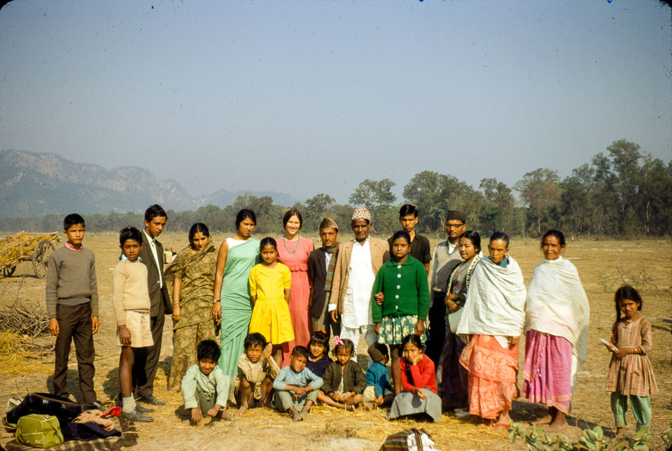Caption: Date: 1967 Location: Sanischare, Jhapa Description: Household of Hari Bilas Ban and Peace Corps volunteer Beth Prentice. Keywords: Beth Prentice, Bob Frank, Families, Family, Nepal Photo History Project, PC volunteer, Peace Corp Photo History, People, group photo, named person