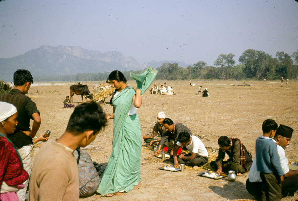Caption: Date: 1968 Location: Sanischare, Jhapa Description: Guruama preparing to continue with food service at the annual school picnic. Keywords: Beth Prentice, Bob Frank, Nepal Photo History Project, Peace Corp Photo History, People, community, event, named person, picnic, school