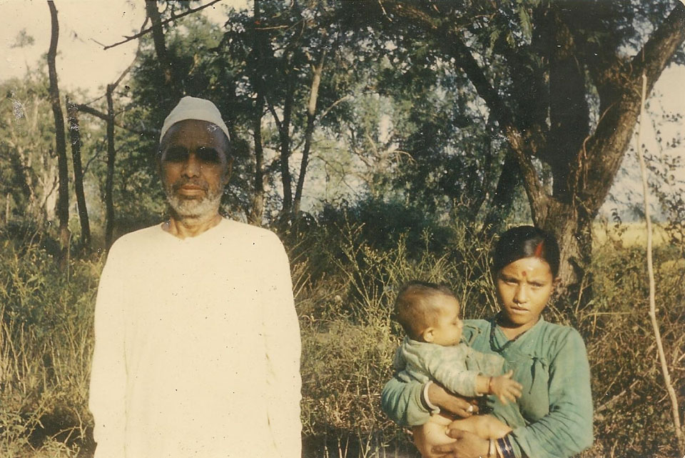 Caption: Date: 1967 Location: Sanischare, Jhapa Description: A family that was living outside of Saniscare bazaar. Wife holding her child is very young. Keywords: Beth Prentice, Bob Frank, Families, Family, Nepal Photo History Project, Peace Corp Photo History, People, portrait