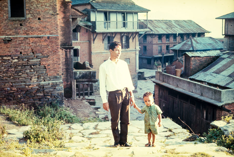 Caption: Date: 1966 Location: Bandipur, Tanahun Description: Father and son at the entrance to the bazaar Keywords: Bill Hanson, Families, Family, Nepal Photo History Project, Peace Corp Photo History, People, bazaar, commerce