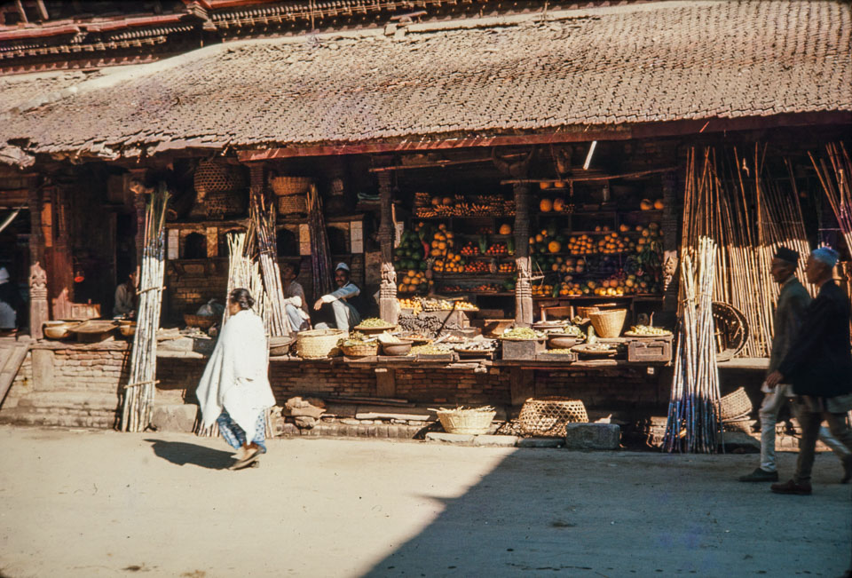 Caption: Date: 1969 Location: Kathmandu, Kathmandu Description: Shop near Asan Tole. Keywords: Bill Hanson, Nepal Photo History Project, Peace Corp Photo History, commerce, shop