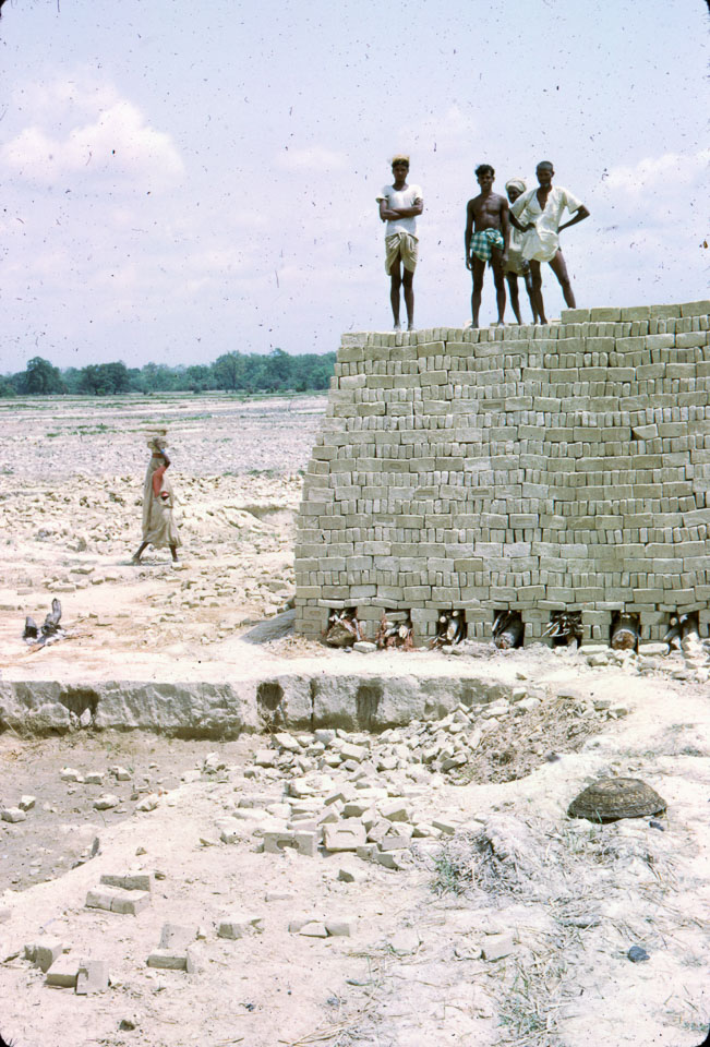 Caption: Date: 1966-1968 Location: Birgunj, Parsa Description: Brick kiln and stack of newly made bricks. Keywords: Bob Nichols, Nepal Photo History Project, Peace Corp Photo History, brick making, handicrafts