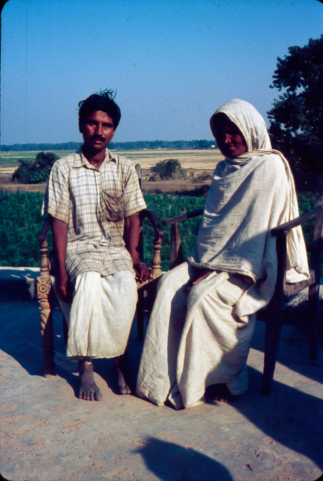 Description: Man and wife. May be related to Babu Sahib, who was the large landowner in Biruwa Guthi and the head of the panchayat, or a worker in his household. They lived as part of an extended family in the only brick structure in the village; picture taken on top of that home. Keywords: Bob Nichols, Families, Family, Nepal Photo History Project, Peace Corp Photo History, People, named person, portrait