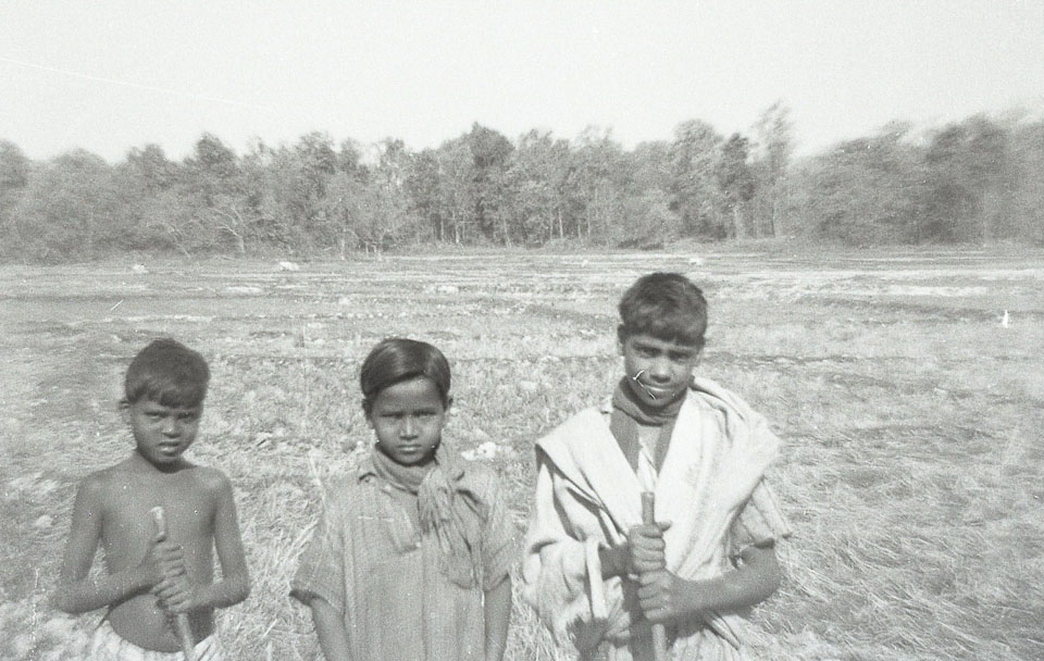 Caption: Date: 1967 Location: Biruwa Guthi, Parsa Description: Boys taking a break from tending cows in the fields to pose for a picture. The jungle is behind the fields. Keywords: Bob Nichols, Nepal Photo History Project, Peace Corp Photo History, People, agriculture, child, shepherding, tending animals