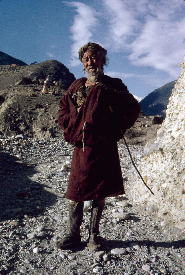 Caption: Date: 1967-10 Location: Mustang Description: Man on trail near the Kali Gandaki river. Keywords: Bob Nichols, Nepal Photo History Project, Peace Corp Photo History, People, portrait