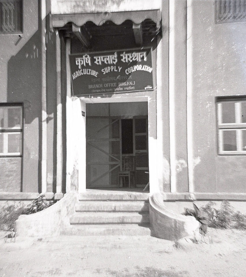 Caption: Date: 1967 Location: Birganj, Parsa Description: Agriculture Supply Corporation (known as "ASC") office. Keywords: Bob Nichols, Nepal Photo History Project, Peace Corp Photo History, agriculture, community, government building