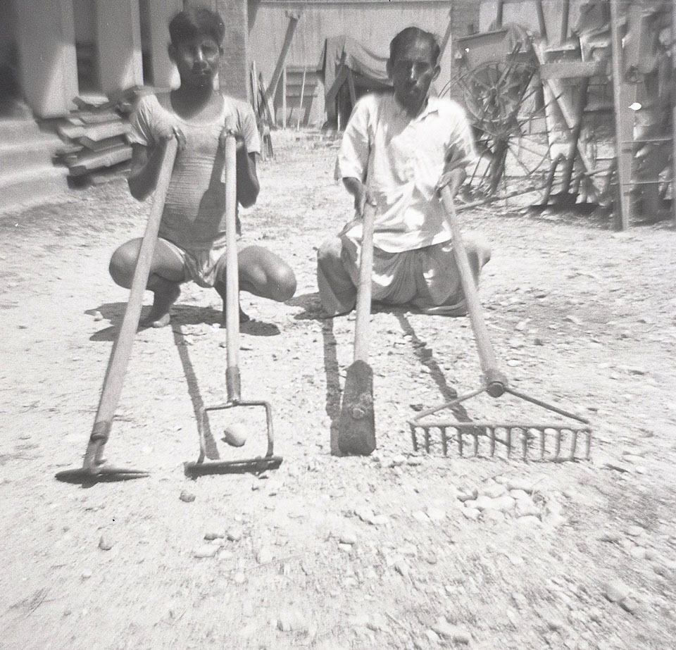 Caption: Date: 1967 Location: Birganj, Parsa Description: New hand-held agricultural implements, at the Agricultural Supply Corporation office. Keywords: Bob Nichols, Nepal Photo History Project, Peace Corp Photo History, agriculture, home life, tools