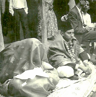 Caption: Date: 1967 Location: Parsa Description: Wedding scene. May be in Birganj. Bride, left with veil over her head and groom right. Keywords: Bob Nichols, Nepal Photo History Project, Peace Corp Photo History, event, wedding