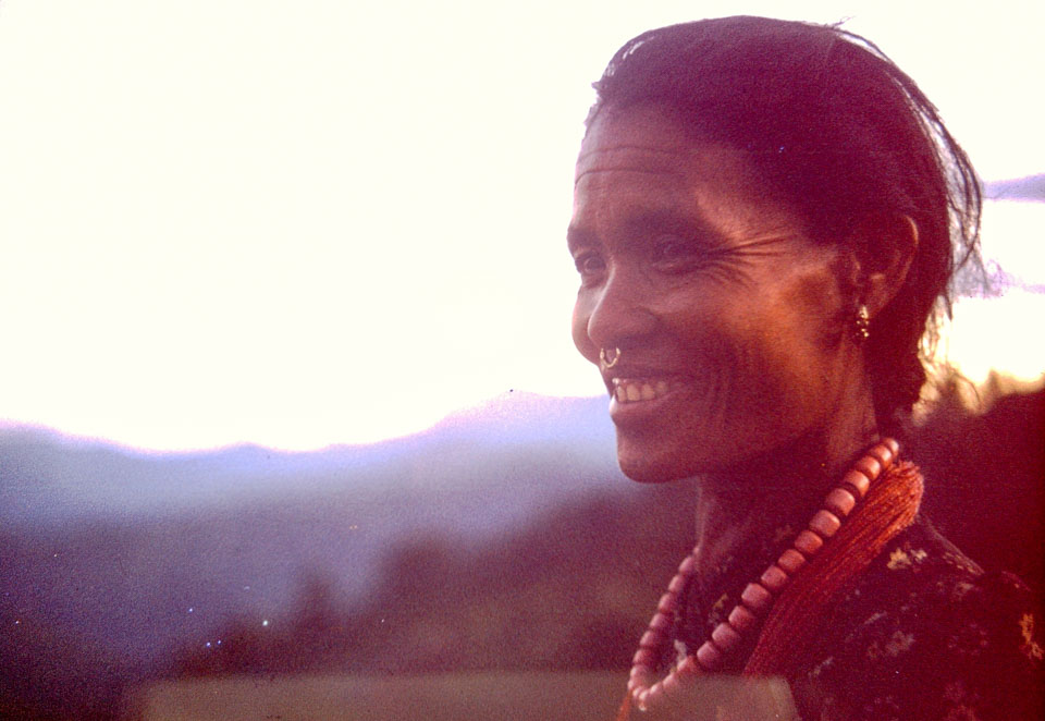 Caption: Date: 1970 Location: Gorkha Description: Woman with necklace. The picture may have been taken at Aanppipal. Keywords: Bob Nichols, Nepal Photo History Project, Peace Corp Photo History, People, portrait
