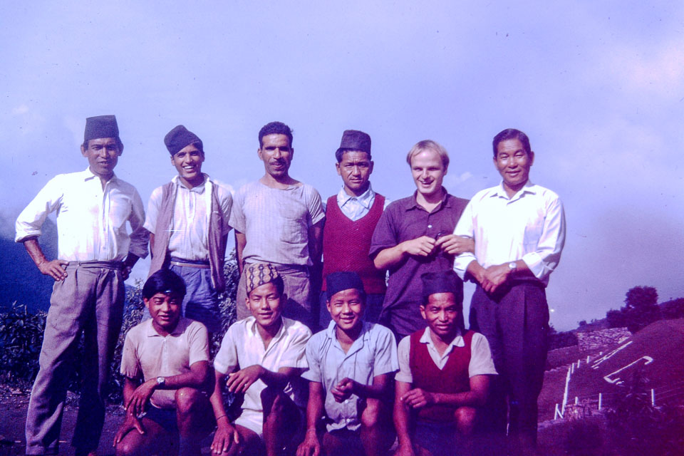 Caption: Date: 1970-09 Location: Lumle, Kaski Description: Staff picture for a Peace Corps training program for mountain agriculture held at the Lumle Agriculture Center. Bob Nichols, Peace Corps trainer, is back row, second from right. Keywords: Bob Nichols, Nepal Photo History Project, PC volunteer, Peace Corp Photo History, People, event, group photo, named person, training event