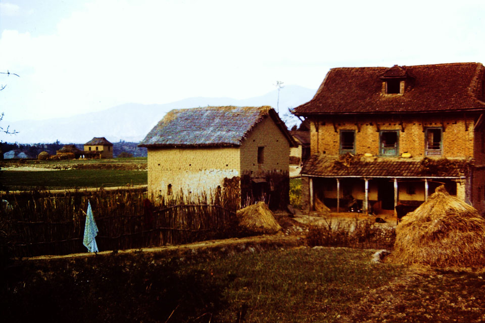 Caption: Date: 1971-02 Location: Kathmandu Description: House on farm land. May be near Kirtipur. Keywords: Bob Nichols, Nepal Photo History Project, Peace Corp Photo History, home life, house exterior