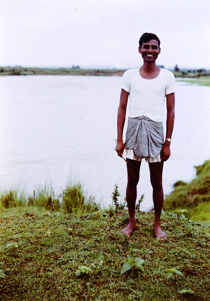 Caption: Date: 1966-1967 Location: Biruwa Guthi, Parsa Description: Mr. Mallick. He was an agricultural cooperative official assigned to work in Biruwa Guthi Panchayat. He always had a big, easy smile. With the large water body behind, the picture may have been taken during the monsoon season. Keywords: Bob Nichols, Nepal Photo History Project, Peace Corp Photo History, People, named person, portrait