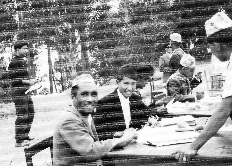 Caption: Date: 1966 Location: Dhankuta, Dhankuta Description: Staff members from the Dhankuta District Panchayat Office conducting elections for various district "Sangathans": special interest Associations or Organizations, such as "Bal Sangathan" (Children's Organization) or Mahila Sangathan (Women's Organization). Keywords: Brian Cooke, Nepal Photo History Project, Peace Corp Photo History, election, event, political event