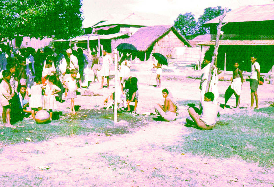 Caption: Date: 1963 Location: Inaruwa, Sunsari Description: Goat being butchered on bazaar day. Keywords: Don Reese, Nepal Photo History Project, Peace Corp Photo History, agriculture, butchering, commerce, haat, market