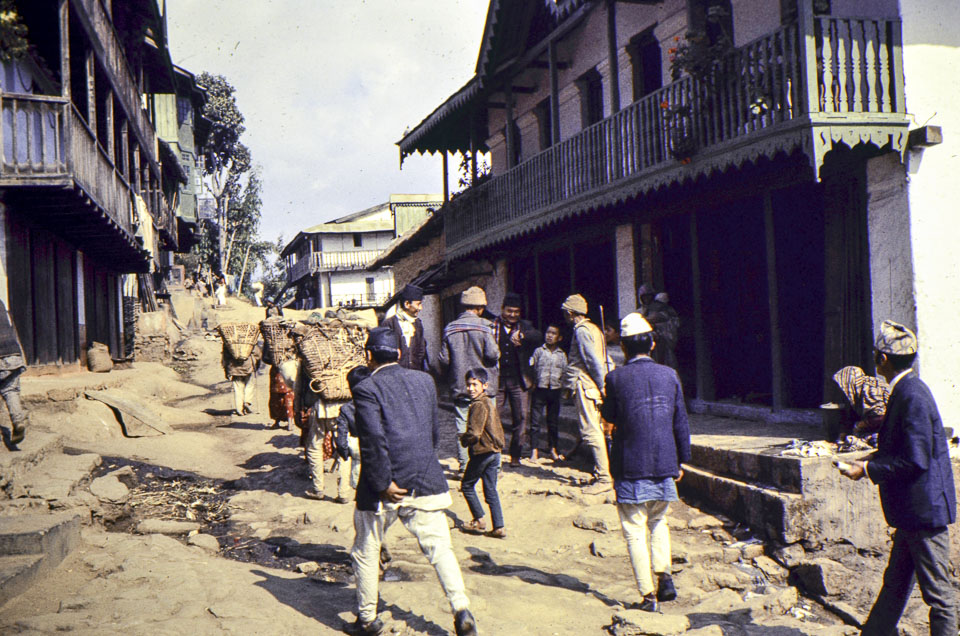 Caption: Date: 1971 Location: Ilam, Ilam Description: Street scene north of Ilam's main square. Keywords: John Hughes, Nepal Photo History Project, Peace Corp Photo History, community, street scene
