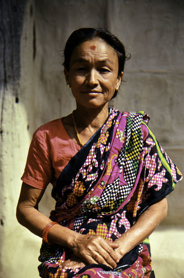 Caption: Date: 1976 Location: Arjundhara, Jhapa Description: Newari woman (Shrestha). Keywords: John Hughes, Nepal Photo History Project, Peace Corp Photo History, People, named person, portrait