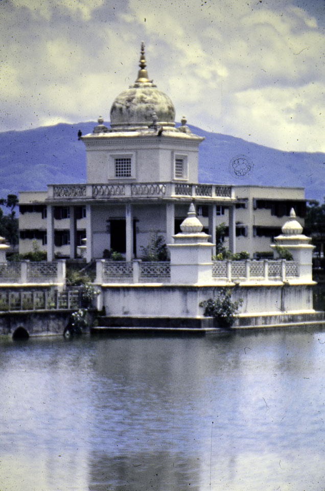 Caption: Date: 1971 Location: Kathmandu, Kathmandu Description: Yamaleshwor Mahadev Mandir at Rani Pokhari. Keywords: John Hughes, Nepal Photo History Project, Peace Corp Photo History, community, mosque, temple