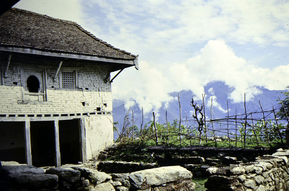 Caption: Date: 1971-05 Location: Ilam Description: Porter rest house north of Ilam bazaar. Keywords: John Hughes, Nepal Photo History Project, Peace Corp Photo History, chautara, community