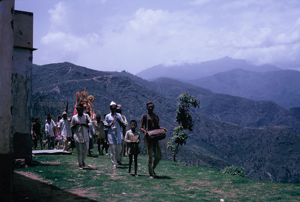 Date: 1969 Location: Chautara, Sindhupalchok Description: Parade to the tundikhel as part of a religious festival.