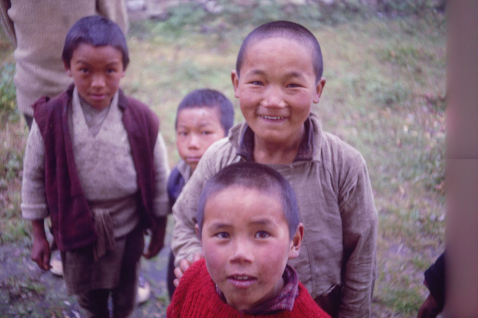 Date: 1968-10 Location: Namche, Solukhumbu Description: Inquisitive young Sherpa boys.