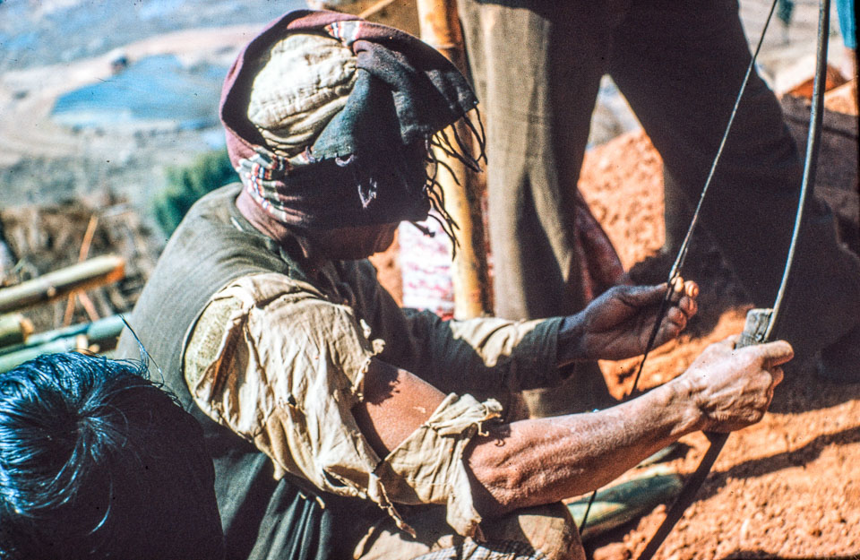 Date: 1964 Location: Bhojpur Description: Hunter with bow. A bow and arrow was a very rare sight. Hunting animals or birds was spoken of occasionally in the middle hills.