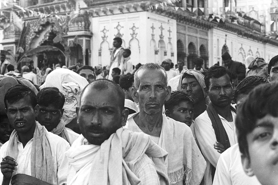 Caption: Date: 1971 Location: Janakpur, Dhanusa Description: Men, boys in front of the Janaki Mandir. Keywords: Mike Furst, Nepal Photo History Project, Peace Corp Photo History, People, community, event, puja, religious service, temple