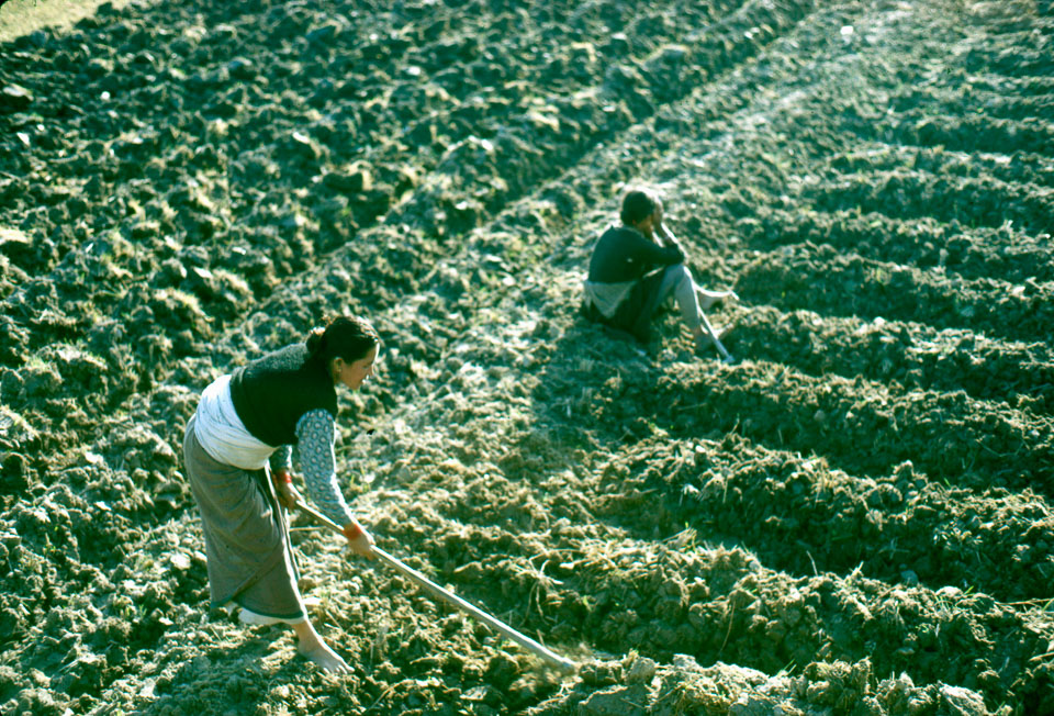 Caption: Date: 1970-1972 Location: Sankhu, Lalitpur Description: Tilling. Keywords: Mike Furst, Nepal Photo History Project, Peace Corp Photo History, agriculture, planting