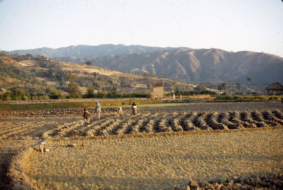 Caption: Date: 1970-1972 Location: Sankhu, Lalitpur Description: Tilling. Keywords: Mike Furst, Nepal Photo History Project, Peace Corp Photo History, agriculture, field, planting