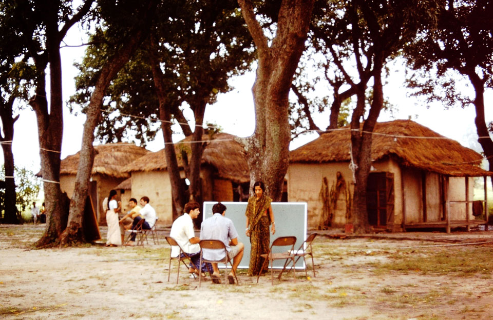 Caption: Date: 1971-02 Location: Birganj, Parsa Description: Parwanipur agriculture training center. Nepali language classes for Peace Corps volunteers. Keywords: Mike Furst, Nepal Photo History Project, Peace Corp Photo History, community, event, government building, training event
