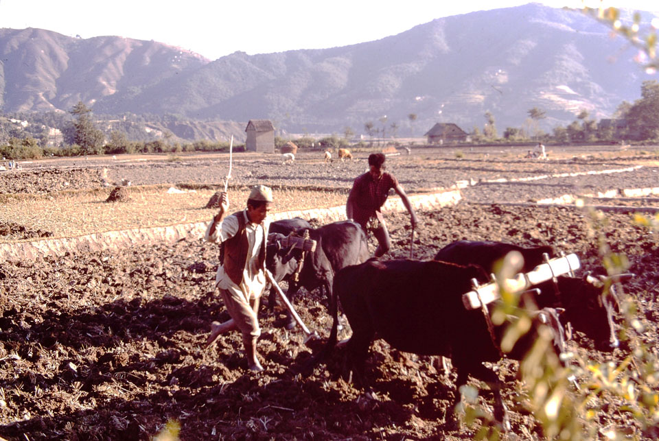 Caption: Date: 1972 Location: Sankhu, Kathmandu Description: Tilling. Keywords: Mike Furst, Nepal Photo History Project, Peace Corp Photo History, agriculture, plowing, tilling
