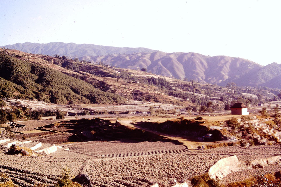 Caption: Date: 1972 Location: Sankhu, Kathmandu Description: Field scene. Keywords: Mike Furst, Nepal Photo History Project, Peace Corp Photo History, agriculture, countryside, field, landscape