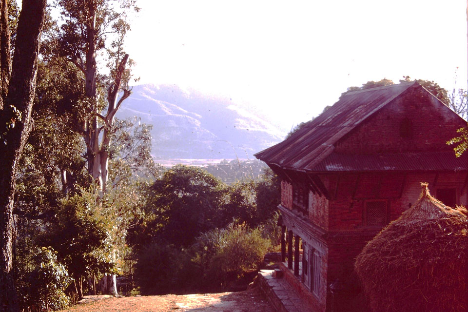Caption: Date: 1972 Location: Sankhu, Kathmandu Description: House on road to Bajrayogini Temple. Keywords: Mike Furst, Nepal Photo History Project, Peace Corp Photo History, home life, house exterior
