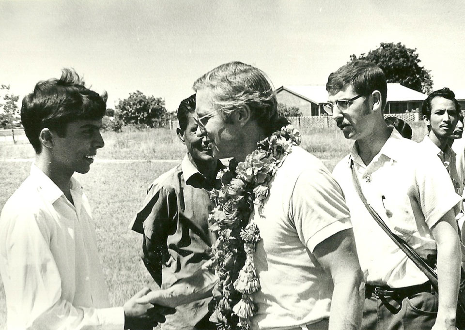 Description: United States Senator Charles Percy meeting students and teachers at Paklihawa Vocational High School, which was a school established for students of British Gurkha solders. Man to Percy’s right is Peace Corps Volunteer Dave Eyrich. Keywords: Mike Furst, Nepal Photo History Project, PC volunteer, Peace Corp Photo History, People, community, named person, school
