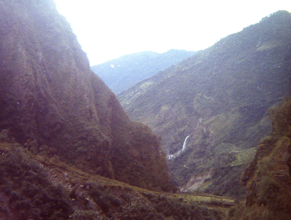 Caption: Date: 1971-1972 Location: Myagdi Description: Waterfall on route to Jomsom. Keywords: Mike Furst, Nepal Photo History Project, Peace Corp Photo History, countryside, landscape, waterfall