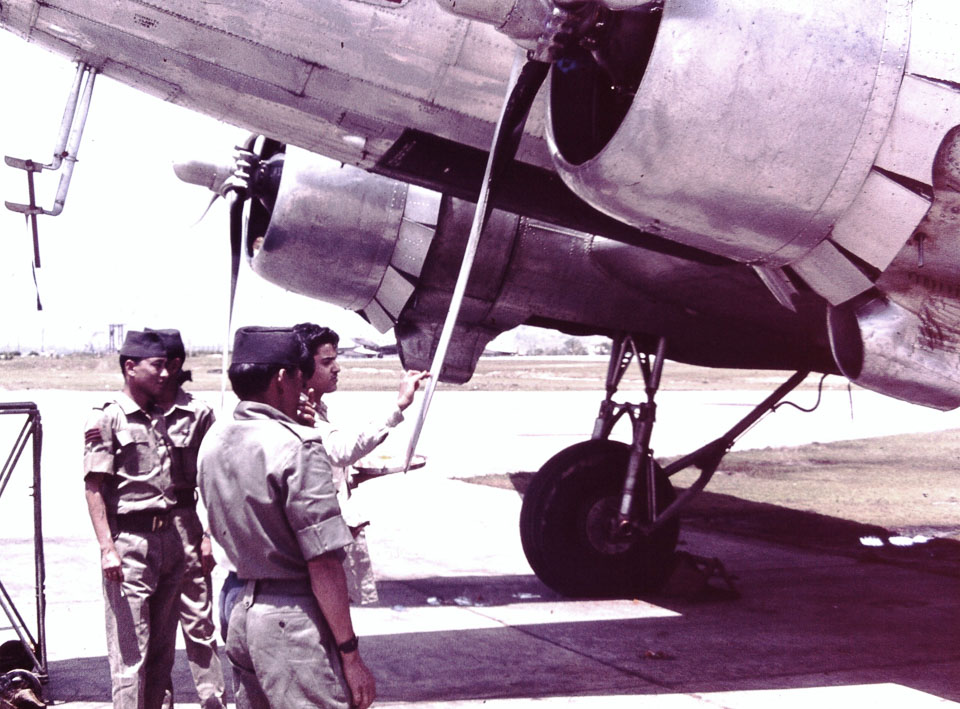 Caption: Date: 1970 Location: Kathmandu, Kathmandu Description: Blessing a DC3 at Tribhuvan Airport, perhaps during Dashain. Keywords: Mike Furst, Nepal Photo History Project, Peace Corp Photo History, airplane, event, puja, religious service, transportation