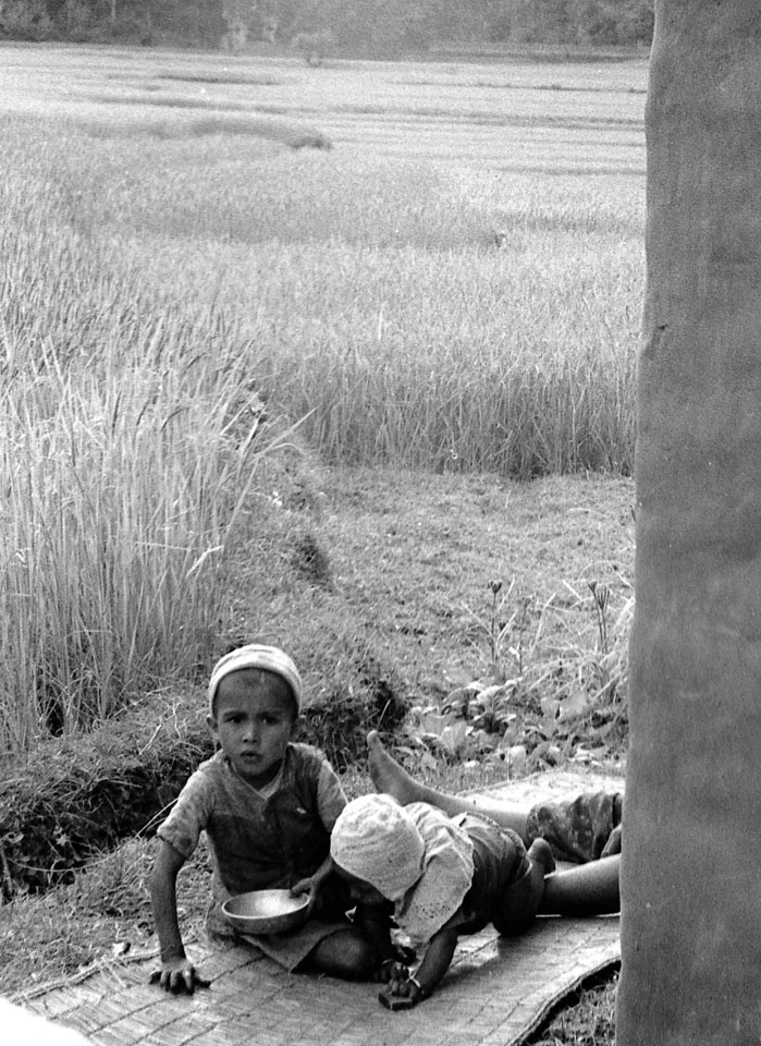 Caption: Date: 1971 Location: Kaski Description: Children by a house in Pokhara Valley. Keywords: Mike Furst, Nepal Photo History Project, Peace Corp Photo History, People, agriculture, child, field