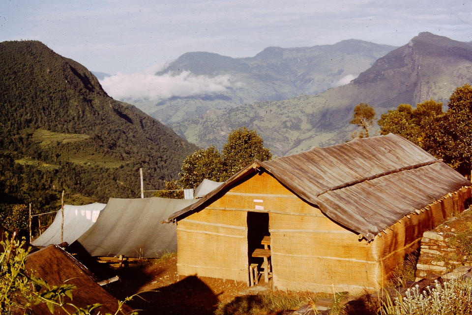 Caption: Date: 1970-10 Location: Lumle, Kaski Description: Training buildings at the Lumle Agricultural Research Center. Keywords: Mike Furst, Nepal Photo History Project, Peace Corp Photo History, agriculture, research location