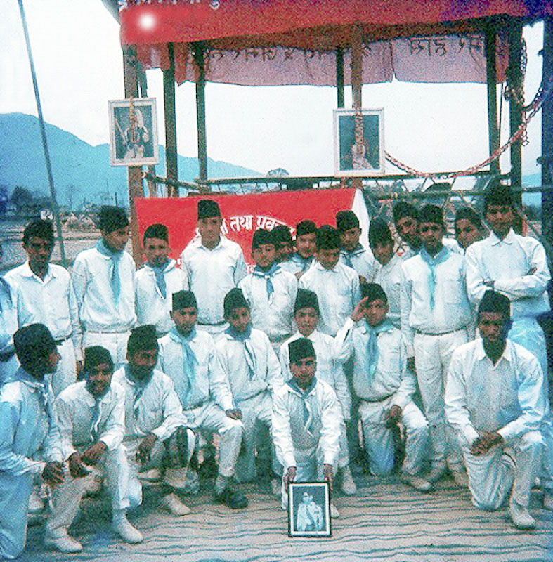 Date: 1966 Location: Sainbu, Lalitpur Description: Gathering of members of the Boy's Organization at Bhaisepati.
